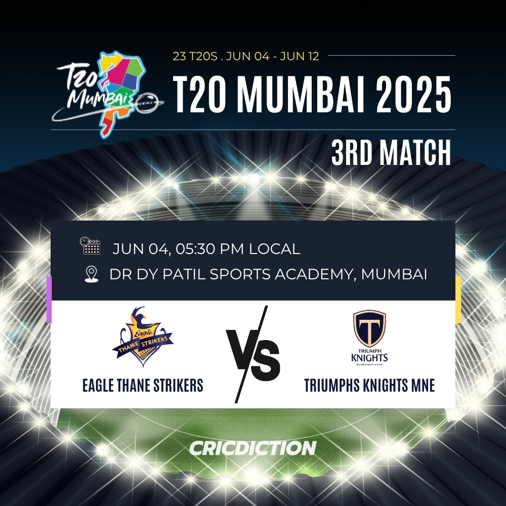 Crucial Clash Between Eagle Thane Strikers and Triumphs Knights MNE in T20 Mumbai 2025 Match Details: Match: Eagle Thane Strikers […]