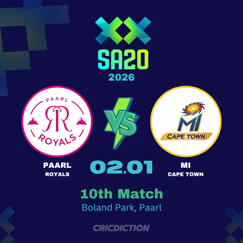 As cricket fans gear up for the 10th Match of SA20 between Paarl Royals and MI Cape Town, the excitement is palpable. Both teams will look to give their all and leave everything on the field. With so much at stake, every run, every wicket will be crucial in determining the outcome of the match.